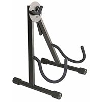 Heavy-duty A-frame. Easy and fast to set up, with a security lock feature. Equipped with a quick-release lever. Foam rubber padding. Black finish. Adjustable height 16.5" to 13". Made to comfortably fit acoustic guitars.